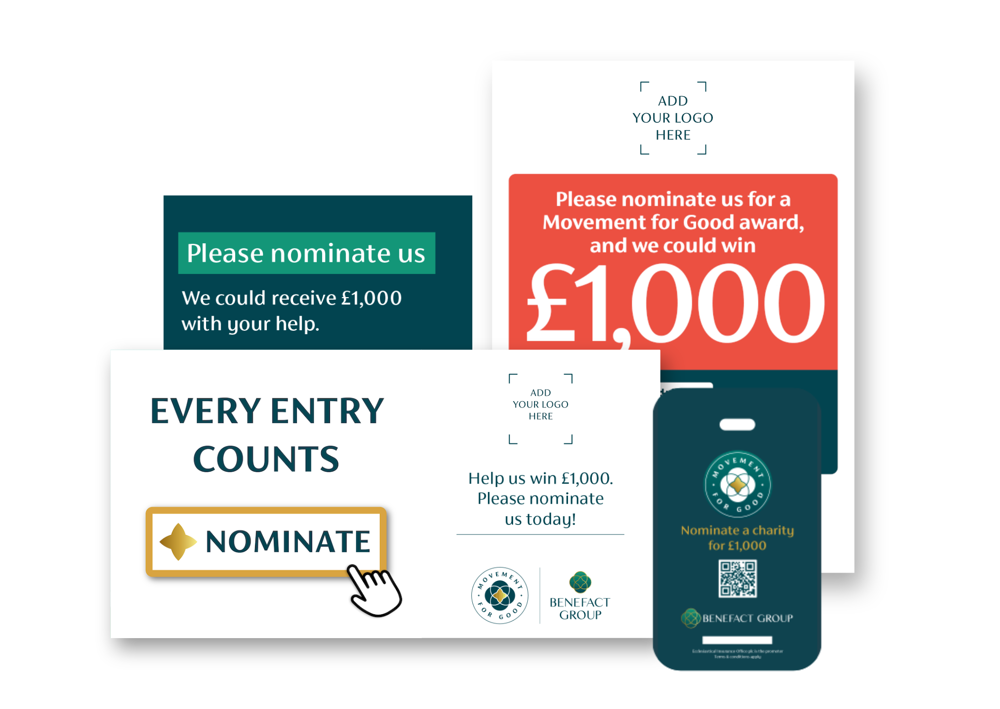 If you're a charity, use your logo to design your own bespoke card to ask your supporters to nominate.